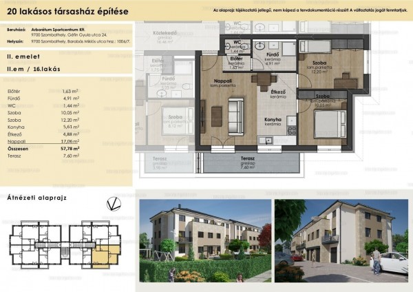| bővebb leírás: | Szombathelyen családi házas övezetben a Farkas Károly utcában most épülő új, nappali + egyszobás ill. nappali + kétszobás lakások várják leendő tulajdonosaikat. A tervező által megálmodott Arborétum lakópark Szombathely északi részén csendes, nyugodt, nagyon jó infrastruktúrával rendelkező környezetben valósul meg. A méltán népszerű és keresett környék előnye, hogy egyesíti a belváros közelsége és a kertvárosi lét minden pozitívumát. A IV. ütemben idén 20db társasházi lakás, 10db garázs és 20db felszíni parkoló kerül értékesítésre. A helyszínen referenciaként a már átadott, I. II. és III. ütemben elkészült épülettömbök megtekinthetőek. A 2 emeletes, 20 lakásos modern társasházak a kor elvárásainak megfelelő magas műszaki tartalommal valósulnak meg. A kiváló tájolású 40-67 m2 közötti ingatlanokat nagyon jó elosztás és élhető terek jellemzik, ennek köszönhetően kedveltek a fiatalabb és az idősebb korosztály körében is. A komfortérzetet tovább növeli, hogy a földszinti lakások terasszal és kertkapcsolattal rendelkeznek, az emeleti lakásokhoz pedig jó méretű erkély tartozik. A lakások értékállóságát az átgondolt tervezés és minőségi anyagok felhasználása biztosítja. Az innovatív építészeti megoldásokat tartalmazó épületek kedvező energetikai besorolással készülnek. Ez a lakás 57,78 m2-es és 7,6 m2 terasz tartozik hozzá. Második emeleten található (2/17) Tájolása: É,ÉK A lakáshoz parkoló: + 1.800.000 Ft Garázs vásárlása: 10.900.000 Ft Tárolós vásárlása: 1.500.000 Ft - 3.500.000 Ft Beköltözés:2025 őszén Néhány műszaki információ: Külső falazat: 30 cm vtg. nutféderes vázkerámiából, falazóhabarcsba rakva 15 cm EPS külső szigeteléssel, 1 cm belső vakolattal. Belső teherhordó-szerkezet: 30 cm vtg. nutféderes hanggátló vázkerámia tégla falazóhabarcsba rakva. Áthidalók: Porotherm v. Leier kerámia kéregelemes rendszerű típus szerkezetek. A nagy fesztávú nyílások felett monolit vasbeton áthidaló Födém: 5 cm vastagságú Leier Mesterpanel födém 18 cm vasalt falbetonnal. Zárófödém hőszigetelés: Leier Mesterpanel 25 cm lépésálló EPS hőszigeteléssel. Válaszfalak: Porotherm vagy azzal egyenértékű 10 cm vtg. válaszfal elemekből Nyílászárók: 3 rtg. hő- és hangszigetelt üvegezésű műanyag ablakok és erkélyajtók redőny fogadására alkalmas szemöldök kialakítással. Redőny: Redőny előkészítés kerül kivitelezésre. Utólag kizárólag RAL 7016 színkódú redőny szerelhető (többletköltség fejében) Burkolatok: Előszoba, konyha, fürdő és WC helyiségekben I. osztályú minőségben 4-5 kopás-állóságú lapburkolat. Nappali és szobák: I. oszt. minőségű 7mm vtg. laminált parketta széles választékban. Fürdő: Csempeburkolat 2, 10 m magasságig. WC: Csempeburkolat 2, 10 m magasságig. Fűtés: Központi gázfűtés tervezett, kondenzációs gázkazánnal a lakásokban padlófűtéssel egyedi hőmennyiség szabályozással és mérővel. Klíma előkészítést a vételár magában foglalja. Tereprendezés: Füvesített udvar és szilárd burkolatú parkoló. Parkoló: 6*10*20-as Piatra szürke térkővel burkolt felület, antracit/sötét szürke vezetősávokkal leválasztott parkolóhelyek. Garázs: 2 db dugalj, 1 db mennyezeti lámpa kiállás, motoros kapu előkészítés, Hörmann garázskapu. Tárolók: 1db mennyezeti lámpa, 1db kapcsoló minden tárolóban. Telekhatár: A telekhatáron 3D-s porszórt kerítés készül lábazattal. Homlokzatra semmilyen szerelvény és kültéri egység nem szerelhető. Klíma kültéri egysége a lakások erkélyének alsó részén a mellvéd fal takarásában lehetséges. Irodánk díjmentes banki hitelkalkulációkat készít ügyfelei részére, egyénre szabott konstrukciókkal. Kérdéseivel keressen: Amatics Andrea +36 20 9999 723 amatics.andrea@gerencserbroker.hu |